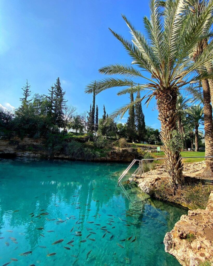 בריכת רחצה עמוקה כ-4 מטר עומק, מפל מדהים, ובריכות רדודות, מקלחות ושירותים.